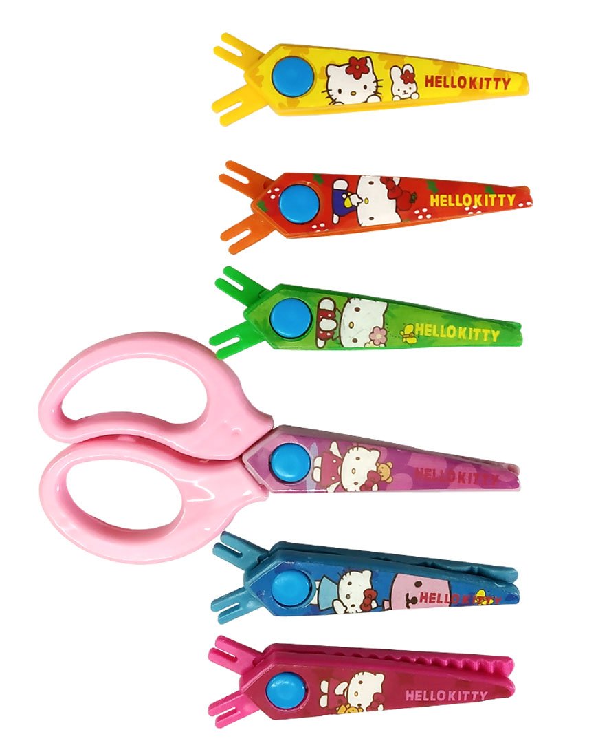 Different design patterns cutting scissors with 6 blades.